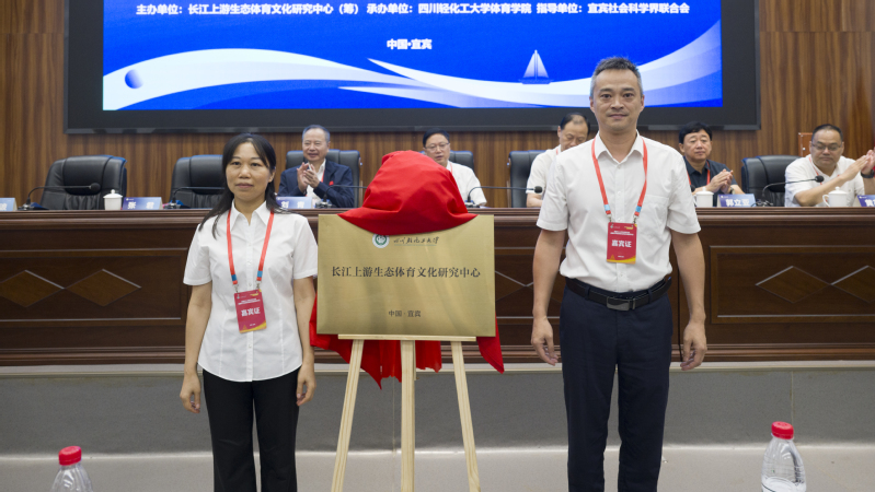 开幕式上,四川轻化工大学党委常委、副校长胡光忠致辞,介绍学校办学成果及体育学科建设、人才培养等成效。他强调,学校将以此次研讨会为契机,汇聚政产学研用智慧,推动生态优势转化为体育健康产业优势。宜宾市社科联常务副主席张君讲话,并与我校体育学院副院长华锐共同为“长江上游生态体育文化研究中心”揭牌。