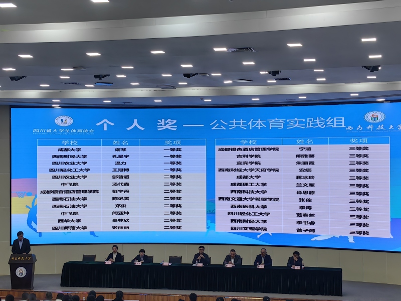 12月11日至12日,由四川省教育厅主办、四川省大学生体育协会执行的2025年四川省高校体育教师基本功大赛在西南科技大学举行。我院参赛教师团队凭借扎实的专业功底、精湛的教学技能和出色的现场发挥,在激烈竞争中脱颖而出、斩获佳绩,充分展现了我院体育教师队伍过硬的专业素养与昂扬向上的精神风貌。