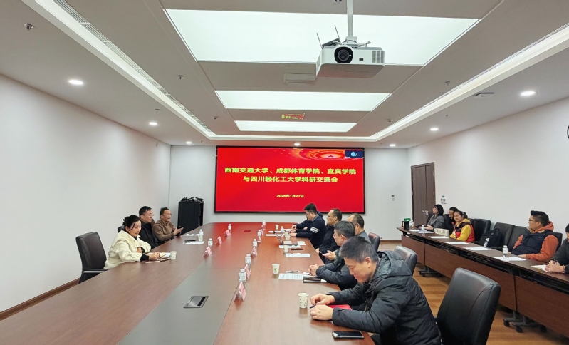 2026年1月27日,成都体育学院科研处处长许传明、西南交通大学管理学院副院长雷斌、宜宾学院科研处副处长雷鸿一行来访我校,与人文社科处、体育学院领导班子就深化科研合作举行座谈。座谈会由体育学院副院长华锐主持。